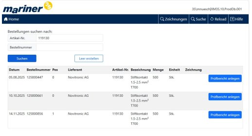 Nummer und Index der Zeichnung zum Bestellzeitpunkt.Basierend auf dieser Nummer und Index wird die Zeichnung angezeigt.Die Zeichnungsnummer stammt aus der Bestellung des Warenwirtschafsystems, der Index auf dem Artikelstamm.